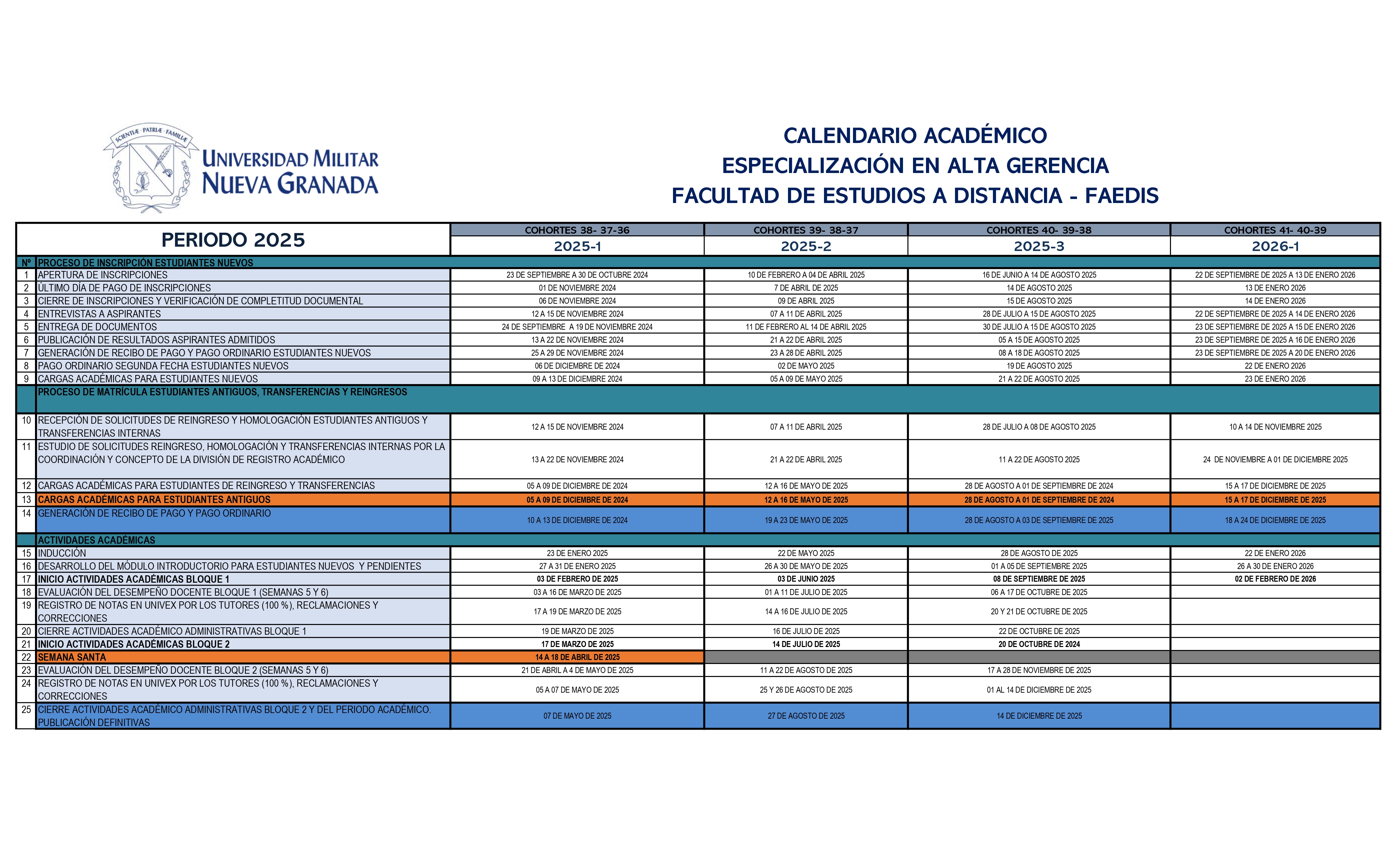 Calendario Académico Especialización Alta Gerencia - 2025 FAEDIS